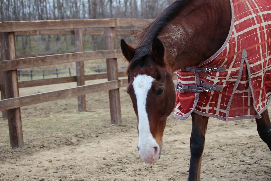 シャトルは、馬着を新しくしてもらっていました。とても良く似合っています。
