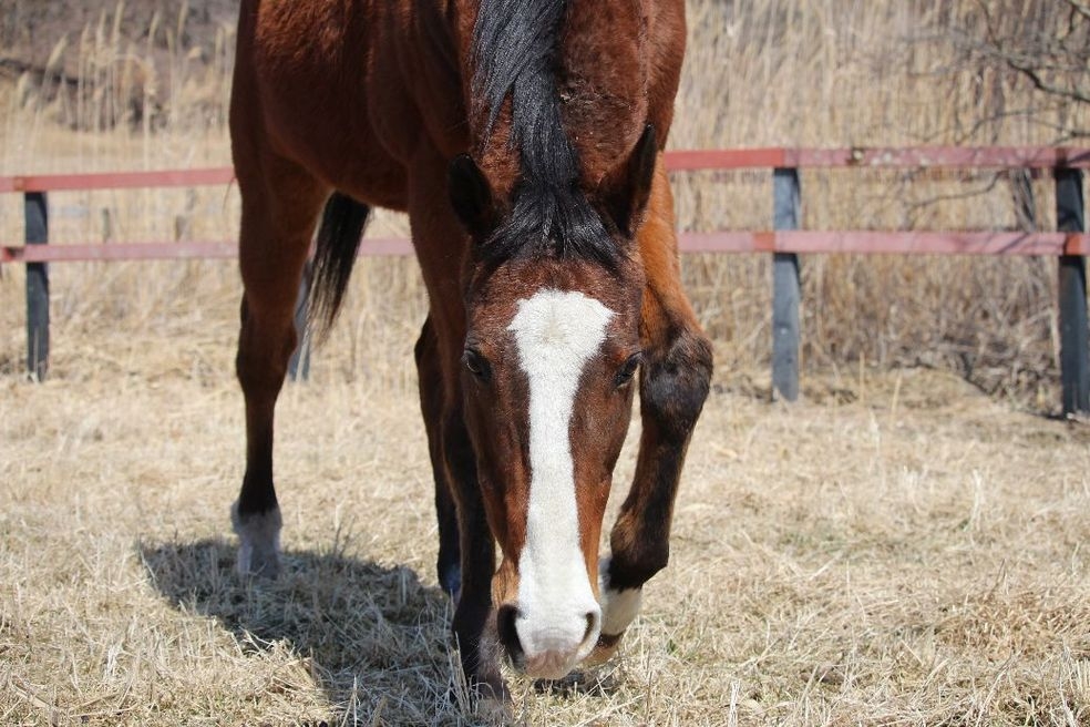 食欲は旺盛で、他の馬は食べないものでもシャトルは食べます。特にバナナが好きなようで、本当に美味しそうな表情をします。(バナナは南国の果物で体を冷やす可能性がありますので、プレゼントしていただく場合は厳寒期はお控えくださると幸いです)