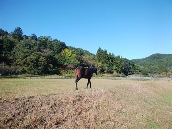 「10月15日は駆虫の日でした。馬房で駆虫薬を持って声かけるとコテツ君は最初はお尻を向けて拒否りましたが、投入するとすぐモグモグしてくれました。なかには 駆虫剤を口に入れさせてくれない仔、駆虫剤を入れてももぐもぐせずなかなか飲みこまない仔がいます。コテツ君いいこです。(*^^*)」とみどりのまきばさん。