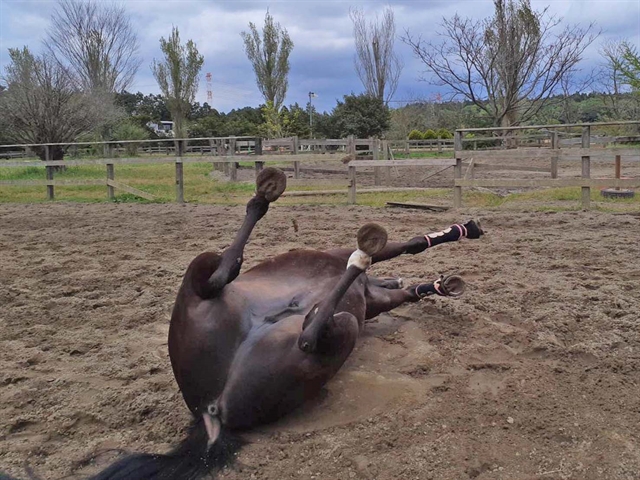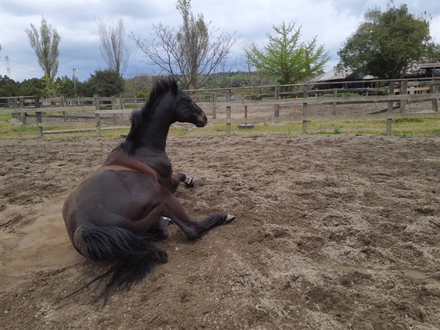 これはやはり嫌だからではなく、厩舎から外に出られて嬉しいのだろうとのことでした。放牧の時間になると「早く出して!」と嘶いているそうです。