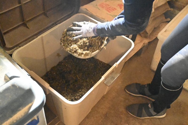 基本飼料の配合は1頭ずつ異なります。たとえばクレスコグランドには、整腸作用のあるファイバープロテクトを他の馬より多めに。そしてフォスターホース4頭とも、麦の代わりに穀物を含まない特別飼料が与えられています。