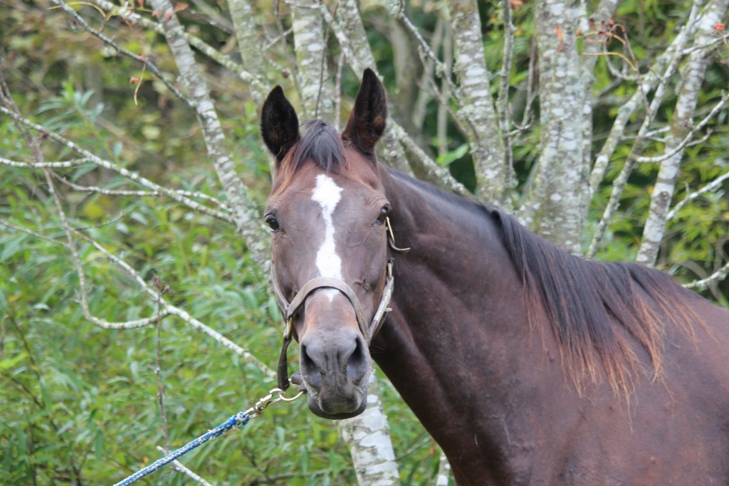 体高があり、とても大きな馬体です。性格は、寂しがり屋。群れの中のボスではないですが、弱い立場でもなく中間の位置にいるそうです。集牧の時も、順番が後になっても落ち着いて待っているそうです。厩舎の中でも、落ち着いてすごしているそうです。食欲はあり、残す事もなく完食しているそうです。